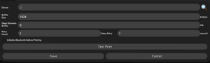 | Initialize Bluetooth Before Printing | Enable this option will cause the system tries to send empty data on first chunk transmission. This will ensure that targeted Bluetooth device has been successfully establish for communication. Use this in case you have Bluetooth that doesn't accept first data. | No |